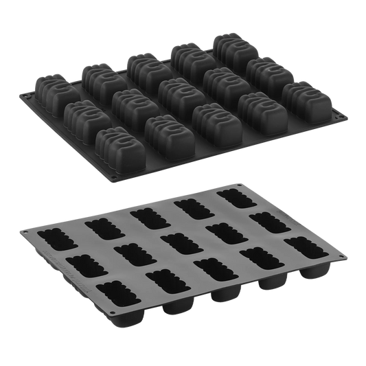 DescriptionTop-level, pure silicone mould 300x400 mm. In collaboration with Antonio Bachour. Pavoflex mould is produced with a special injection presswork method to let a perfect definition of details. Perfect in oven and blast chiller (from -40°C to + 250°C). Size: 80 x 43 x h36mm15 indents, 90ml- Dhs. 179.50